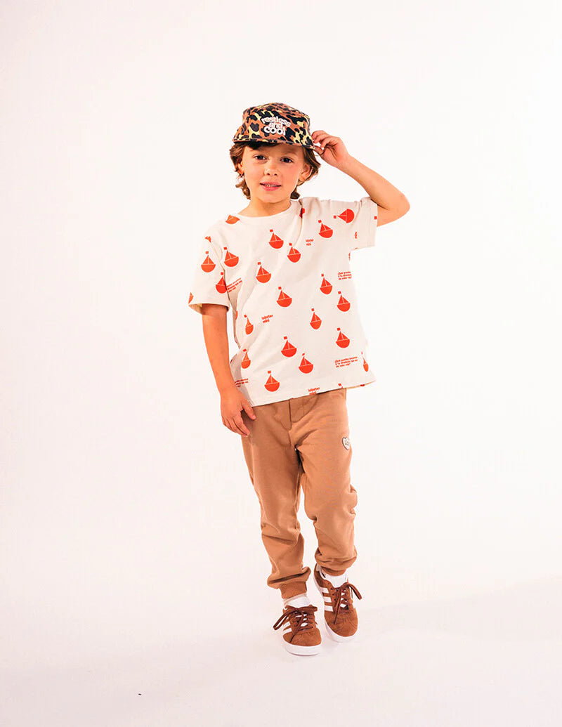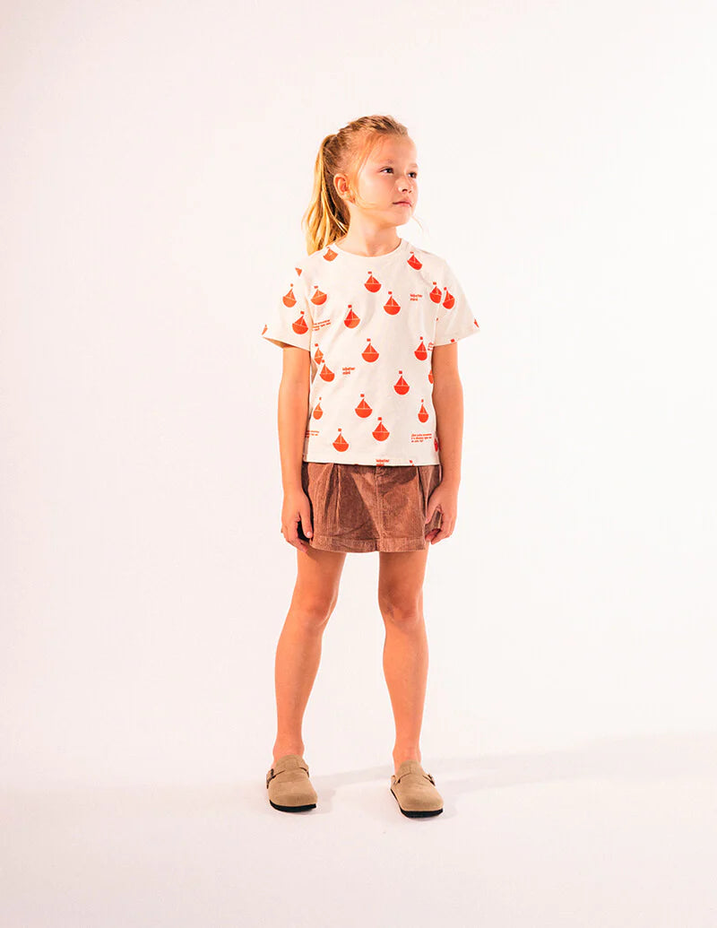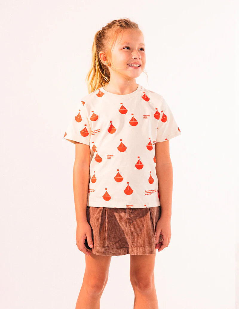 Camiseta infantil, para niñas y niños, con fit suelto, de manga corta, cuello redondo con rib. Estampado de pequeños barquitos rojos compuestos por la unión de diferentes figuras geométricas, acompañados de pequeños que textos que invitan a los niños a buscar elementos rojos a su alrededor. Las figuras básicas y los colores primarios forman un lenguaje visual del mundo que nos rodea y son una herramienta para fomentar el desarrollo cognitivo y el pensamiento lógico de los más pequeños. Con esta colección exploraremos el fascinante universo de los colores y las formas para darle rienda suelta a la imaginación de nuestros hijos.