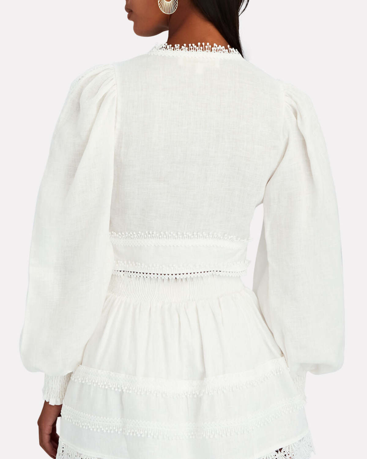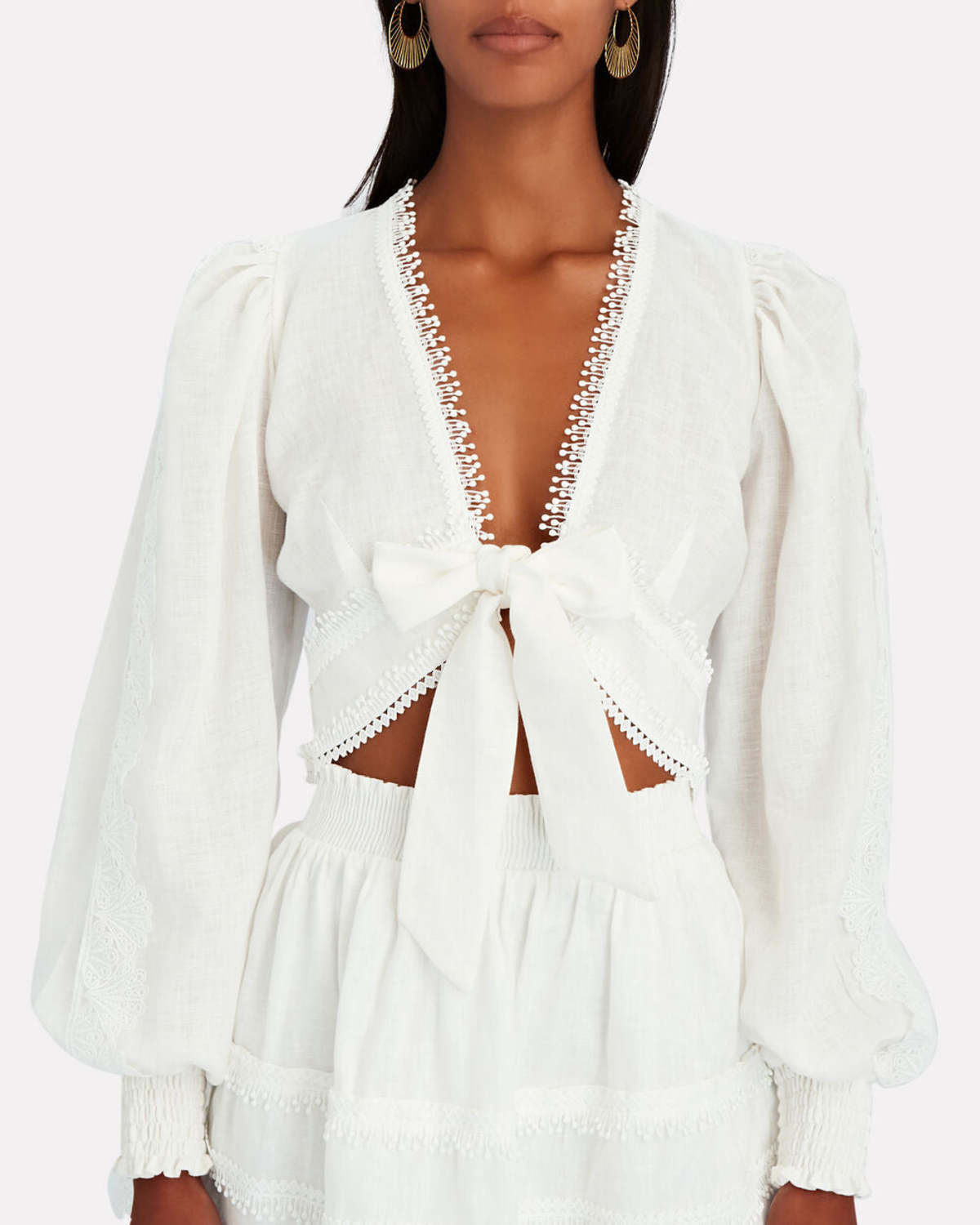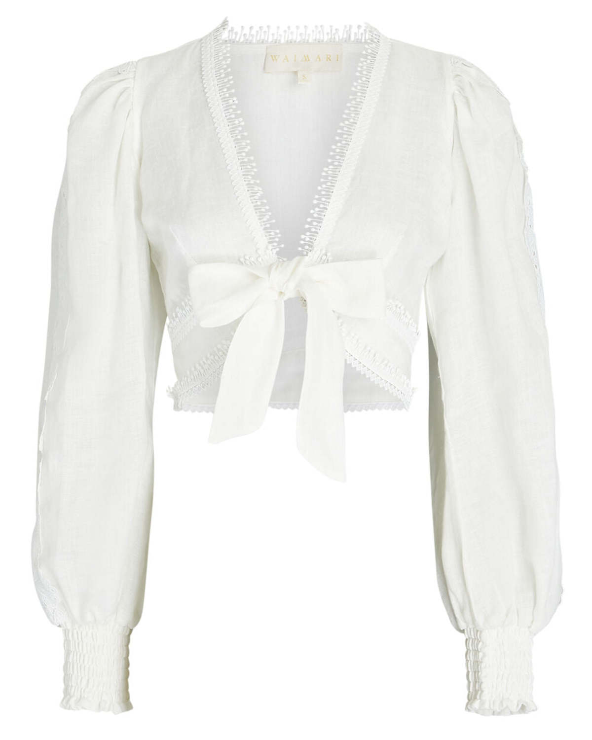 Repleta de detalles románticos, la blusa de lino Chloe de Waimari presenta femeninas mangas obispo y lazos que se pueden atar para formar un precioso lazo. Nuestros estilistas recomiendan combinarla con la falda Chloe a juego.