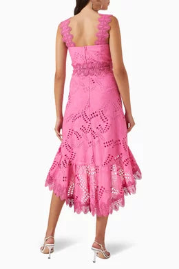 Uno de nuestros favoritos de esta colección: el vestido Jackie es la definición de elegancia. Ajustado en busto, cintura y caderas, realza y realza tu silueta, mientras que su falda ligeramente acampanada, de corte asimétrico y con acabado de encaje, invita al movimiento. Además, cuenta con tirantes anchos de encaje y una cremallera trasera oculta. Baila toda la noche con este coqueto vestido, ideal para ocasiones especiales.