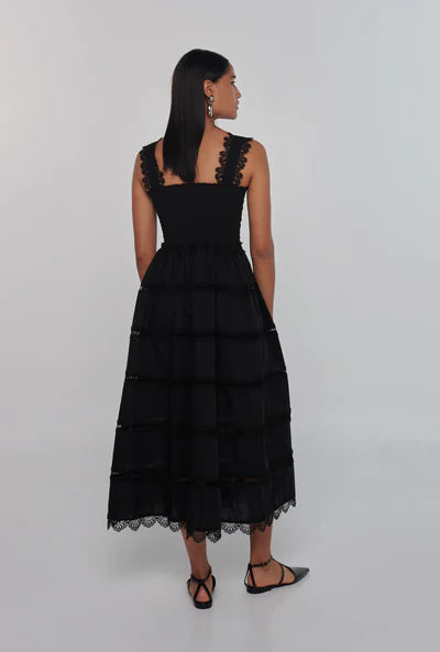 El vestido Kate de Waimari es un vestido de algodón, cuello cuadrado, tiras bordadas, bordados y encajes en todo el cuerpo, espalda elástica y parcialmente forrada. Todas las piezas están hechas a mano en nuestra fábrica, donde empleamos principalmente a madres solteras o al sostén de sus familias para ayudarles a mantener sus hogares.