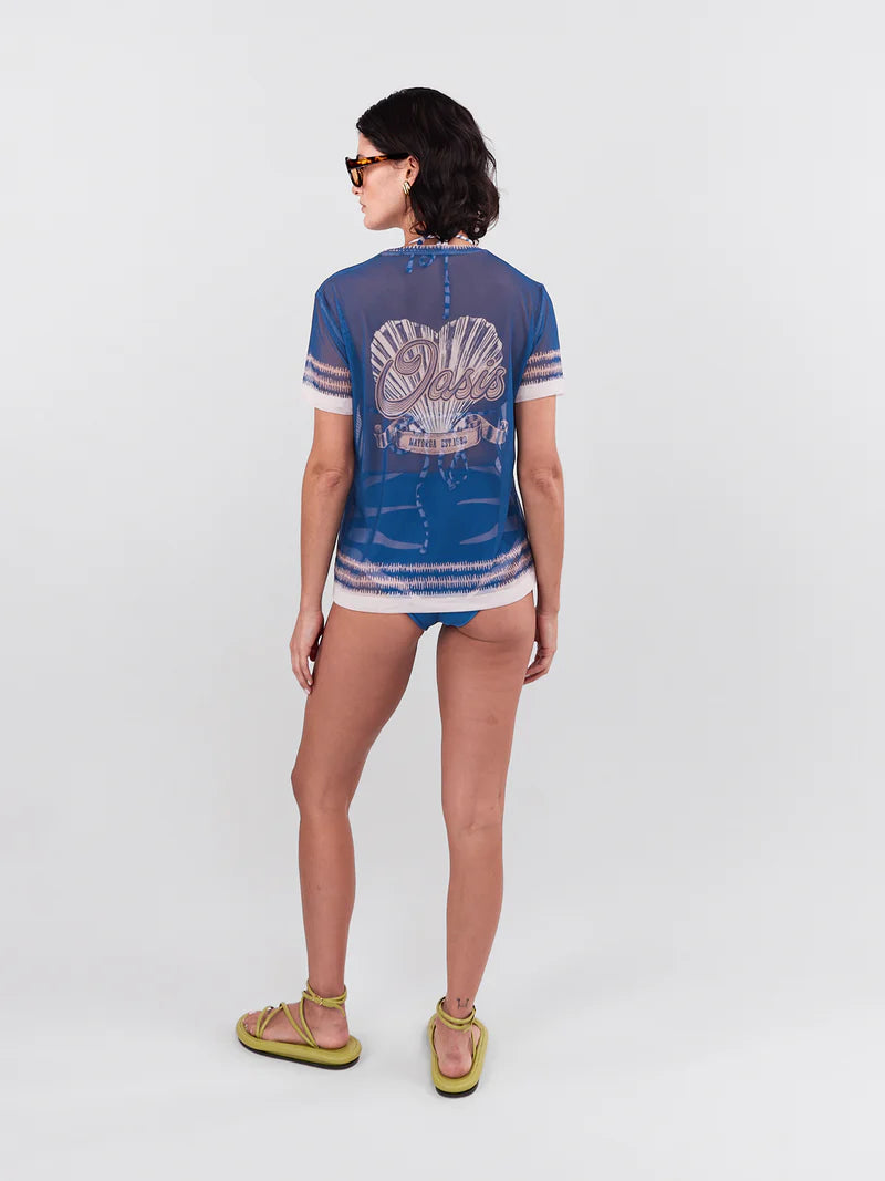 Mesh Top de malla de manga corta, cuello redondo, dobladillo recto