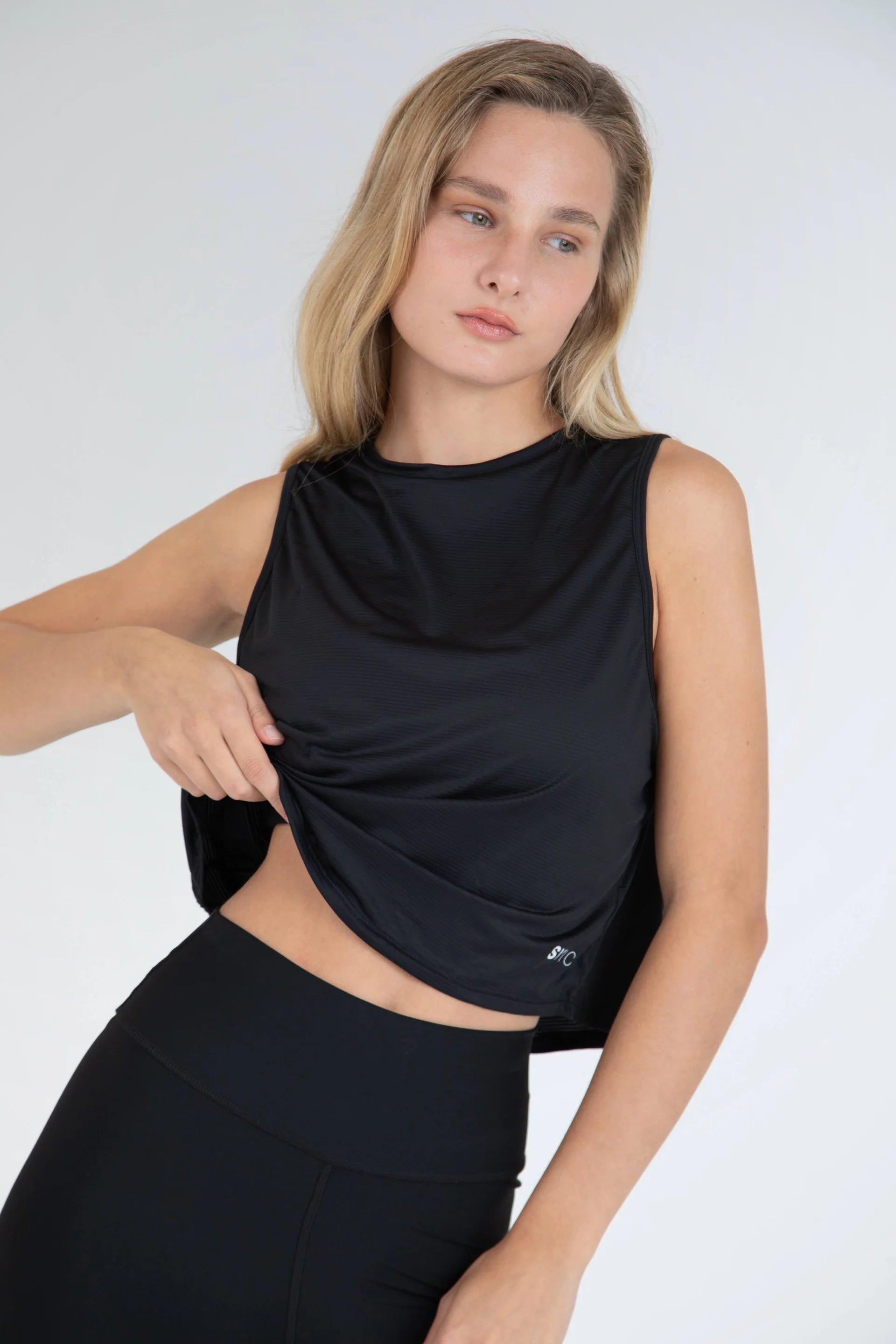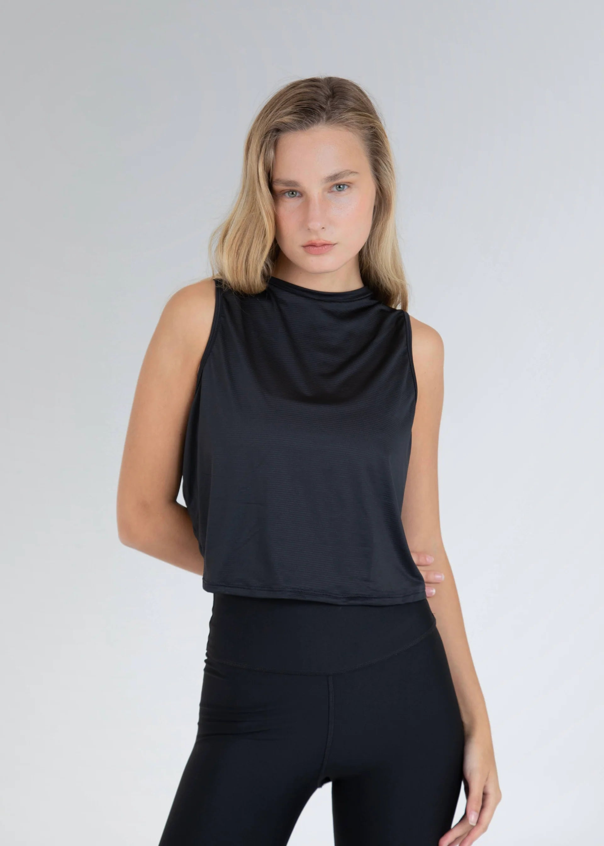 La modelo utiliza talla S. Mide 1.74 cm, cadera 92 cm, cintura 58 cm y busto 79 cm